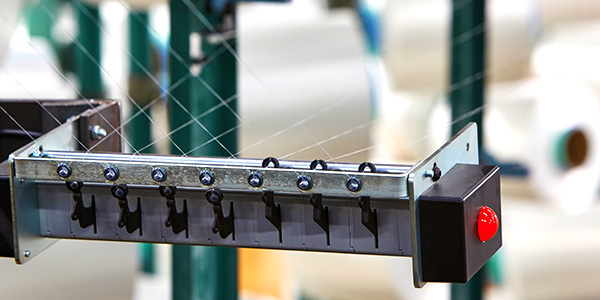SCHRITT 1: Kettfadenscharen werden von Profilbalken oder direkt von einem Spulengatter zugeführt.