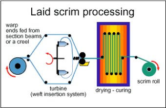 - ਕਦਮ 2: ਇੱਕ ਵਿਸ਼ੇਸ਼ ਘੁੰਮਣ ਵਾਲਾ ਯੰਤਰ, ਜਾਂ ਟਰਬਾਈਨ, ਵਾਰਪ ਸ਼ੀਟਾਂ ਉੱਤੇ ਜਾਂ ਵਿਚਕਾਰ ਤੇਜ਼ ਰਫ਼ਤਾਰ ਨਾਲ ਕਰਾਸ ਧਾਗੇ ਪਾਉਂਦਾ ਹੈ। ਮਸ਼ੀਨ- ਅਤੇ ਕਰਾਸ ਦਿਸ਼ਾ ਵਾਲੇ ਧਾਗੇ ਦੇ ਫਿਕਸੇਸ਼ਨ ਨੂੰ ਯਕੀਨੀ ਬਣਾਉਣ ਲਈ ਸਕ੍ਰੀਮ ਨੂੰ ਤੁਰੰਤ ਇੱਕ ਚਿਪਕਣ ਵਾਲੇ ਸਿਸਟਮ ਨਾਲ ਪ੍ਰੇਗਨੇਟ ਕੀਤਾ ਜਾਂਦਾ ਹੈ।